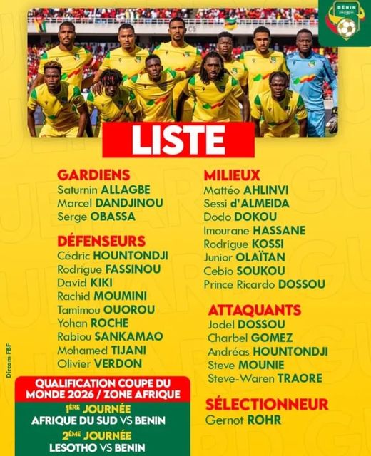 Le sélectionneur national du Bénin, Gernot Rohr, a dévoilé sa liste des joueurs retenus pour les deux premières journées des éliminatoires de la Coupe du monde 2026.