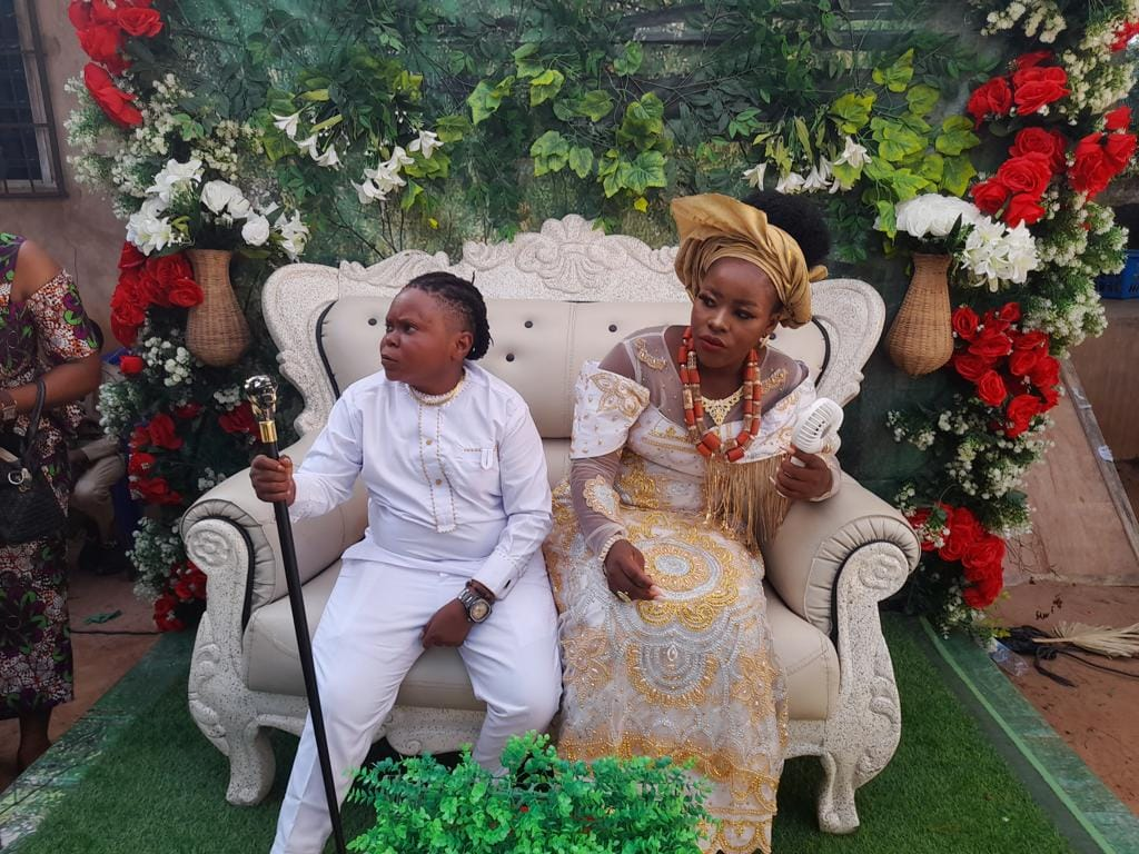 Lors de la cérémonie de mariage l’acteur renommé pour sa petite taille, a révélé avoir fait la connaissance de son épouse à l’église d’un ami à Enugwu-Ukwu, situé dans la zone de gouvernement local de Njikoka. « C’est là que notre histoire d’amour a commencé, et aujourd’hui nous avons décidé de nous unir après un an« , a-t-il déclaré.