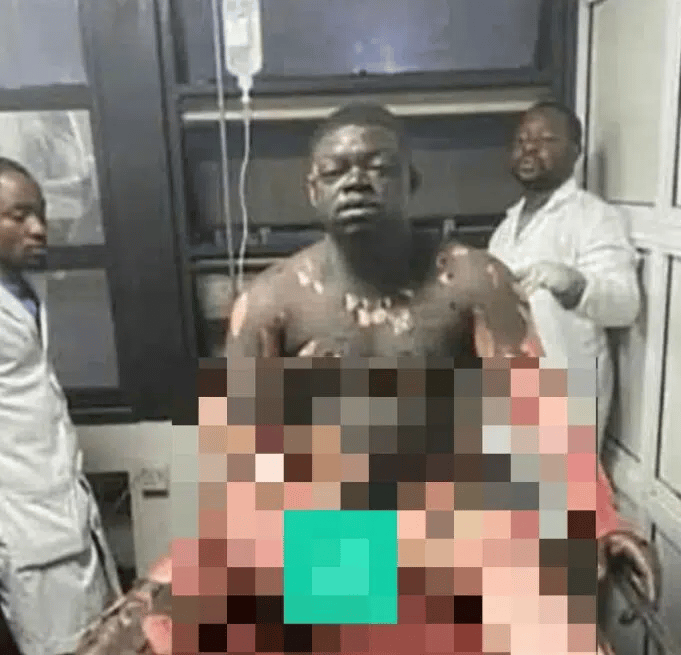 Le mari, qui était de passage au pays, en provenance du Caire, en Egypte, où il vivait, avait été pris au piège dans une maison, qui avait été incendiée. Comme le montre la photo, l’homme a des brûlures sur presque tout le corps. Il n’a eu la vie sauve que grâce à la promptitude du corps médical, qui l’a pris en charge, dès son arrivée à l’hôpital.