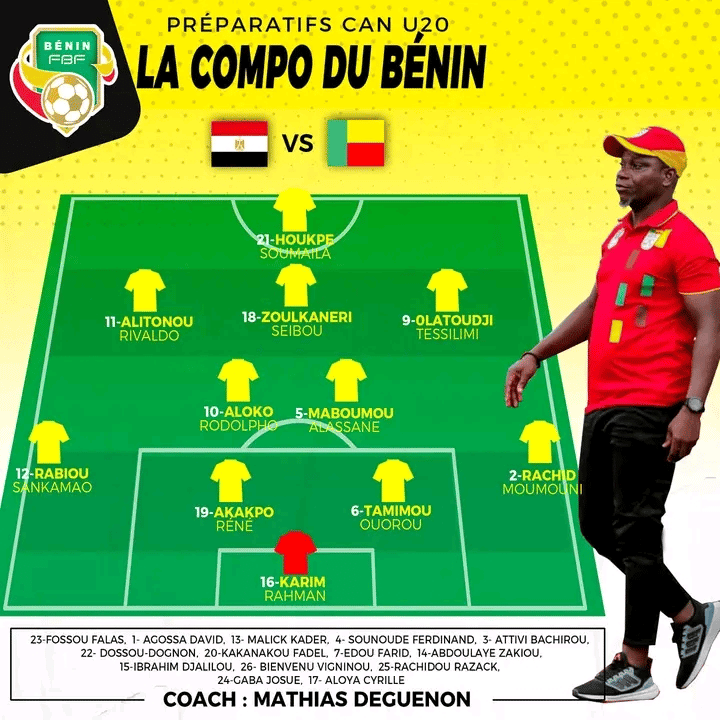 Prépa CAN U20: le onze de départ des Ecureuils du Bénin face à l’Egypte