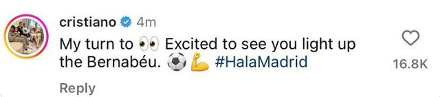 Dans un post sur ses réseaux sociaux, le buteur d’Al-Nassr se dit impatient de voir Mbappé en action chez les Merengue. « A mon tour (de te regarder, ndlr). Hâte de te voir illuminer le Bernabéu », a écrit l’ancienne star du Real sous une publication de Mbappé sur Instagram. Des mots qui feront sans doute plaisir à l’international français, désormais appelé faire autant que son ancienne idole à la Casa Blanca.