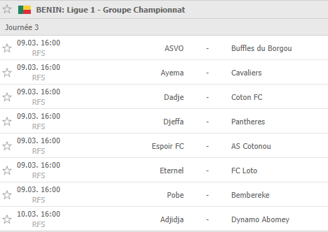 De son côté, le champion en titre du Bénin, le Loto-Poto, ira défier Éternel sur ses installations à Cotonou. Après sa victoire étriquée contre Ayema (2-1) lors de la dernière journée, le club de la loterie nationale va tenter d’enchaîner pour rester dans la course à sa propre succession. En face, les locaux peuvent s’appuyer sur leur courte victoire contre Cavaliers (1-0) le week-end dernier pour tenter de faire un résultat contre leur adversaire du jour.