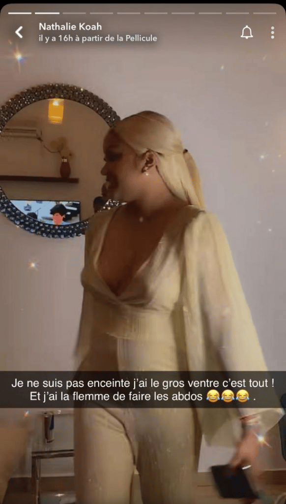 Alors que la rumeur s’enflait sur la toile, la jeune maman n’a pas hésité une seule seconde pour apporter plus d’éclaircissement sur l’affaire. A l’en croire, il ne s’agit aucunement d’un ventre de grossesse comme le rapportent les bruits de couloir. « Je ne suis pas enceinte. J’ai le gros ventre, c’est tout ! Et j’ai la flemme de faire les abdos » a incessamment partagé Nathalie Koah.