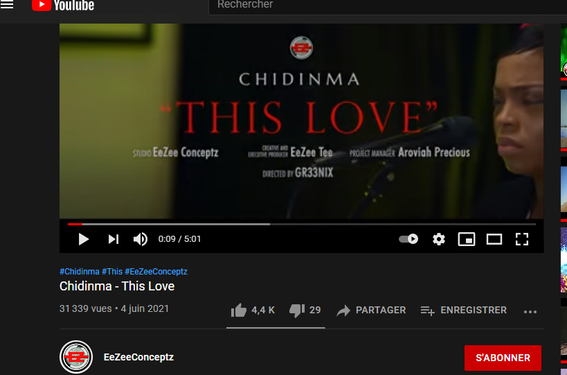 Dans ce nouveau single, la chanteuse a fait usage de sa voix pour glorifier Dieu, dont elle a énuméré les bienfaits incommensurables. Sortie ce vendredi 4 juin 2021, « This Love », une ballade sincère sur l’amour de Dieu, devient déjà virale sur la toile. La chanson totalise déjà plus de 30.000 vues, en moins de 3 heures.