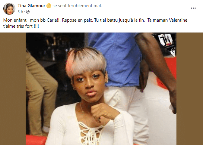 « Mon enfant, mon bb Carla!!! Repose en paix. Tu t’ai battu jusqu’à la fin. Ta maman Valentine t’aime très fort !!!! » a écrit Tina Glamour. Avec cette triste nouvelle, Valentine Logbo perd ainsi deux enfants en trois ans. Un gros coup dur très difficile à supporter !