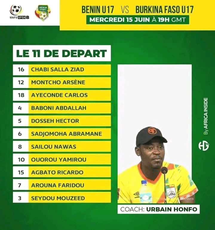 Voici la compo officielle du Bénin U17 face au Burkina Faso U17: