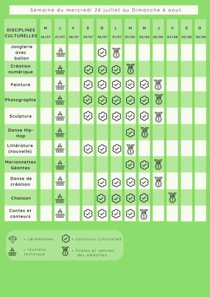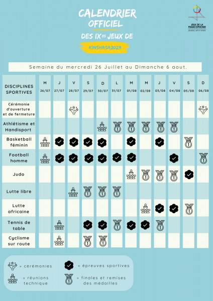 PROGRAMME DES COMPÉTITIONS SPORTIVES ET CONCOURS CULTURELS DES IXES JEUX DE LA FRANCOPHONIE RD CONGO KINSHASA 2023