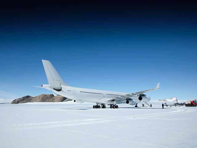 Pour la première fois de l’histoire de l’aéronautique, une compagnie réussit à faire atterrir un Airbus A340 sur une piste de glace en Antarctique. Un atterrissage réussi que l’on doit au patron (et pilote) de la compagnie de leasing Hi Fly.