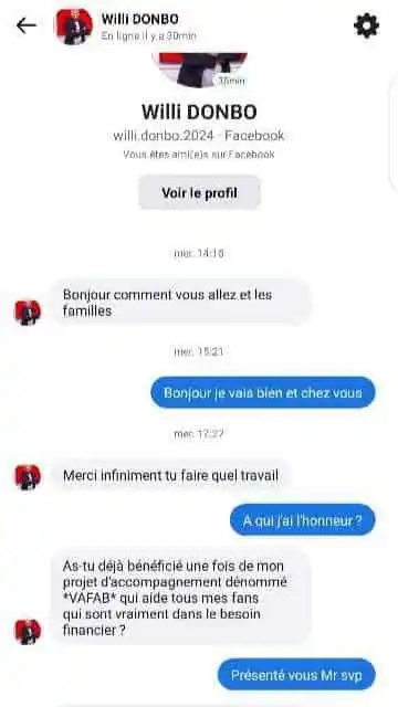 Il a en effet détecté le compte frauduleux nommé « Willy Donbo » et a rapidement communiqué à ce sujet pour préserver sa réputation et éviter que ses fans ne soient dupés. « Alerte vigilance. Un faux profil usurpant mon identité, arnaque des honnêtes citoyens », écrit-il.